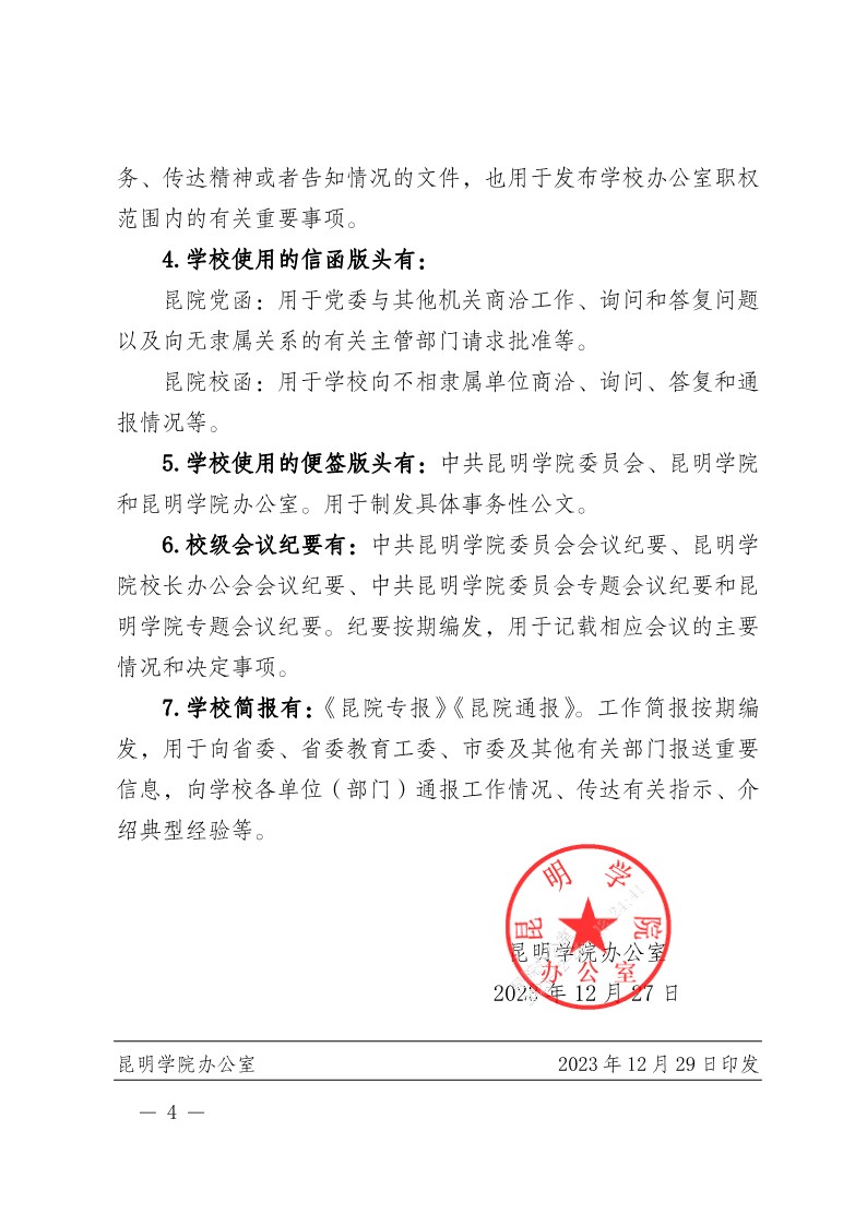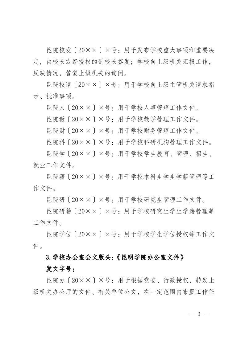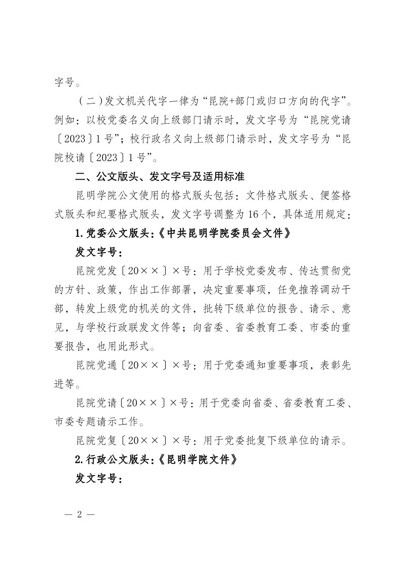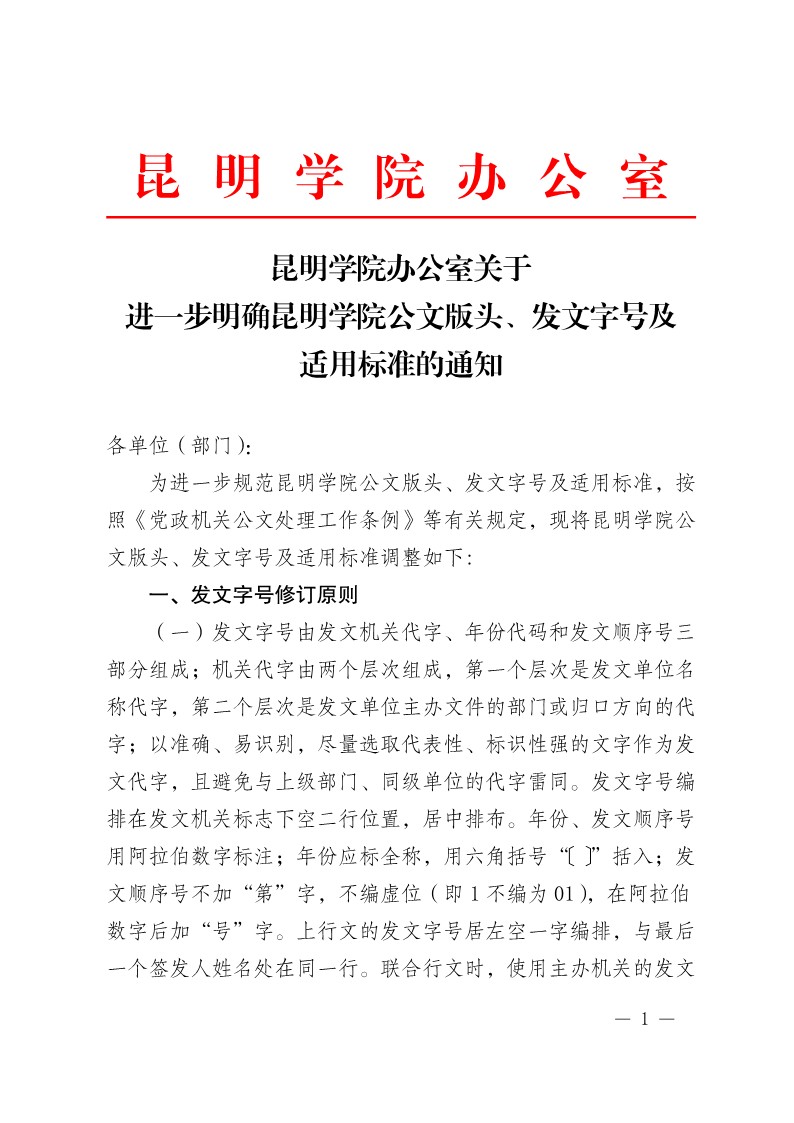 昆明学院办公室关于进一步明确昆明学院公文版头、发文字号及适用标准的通知